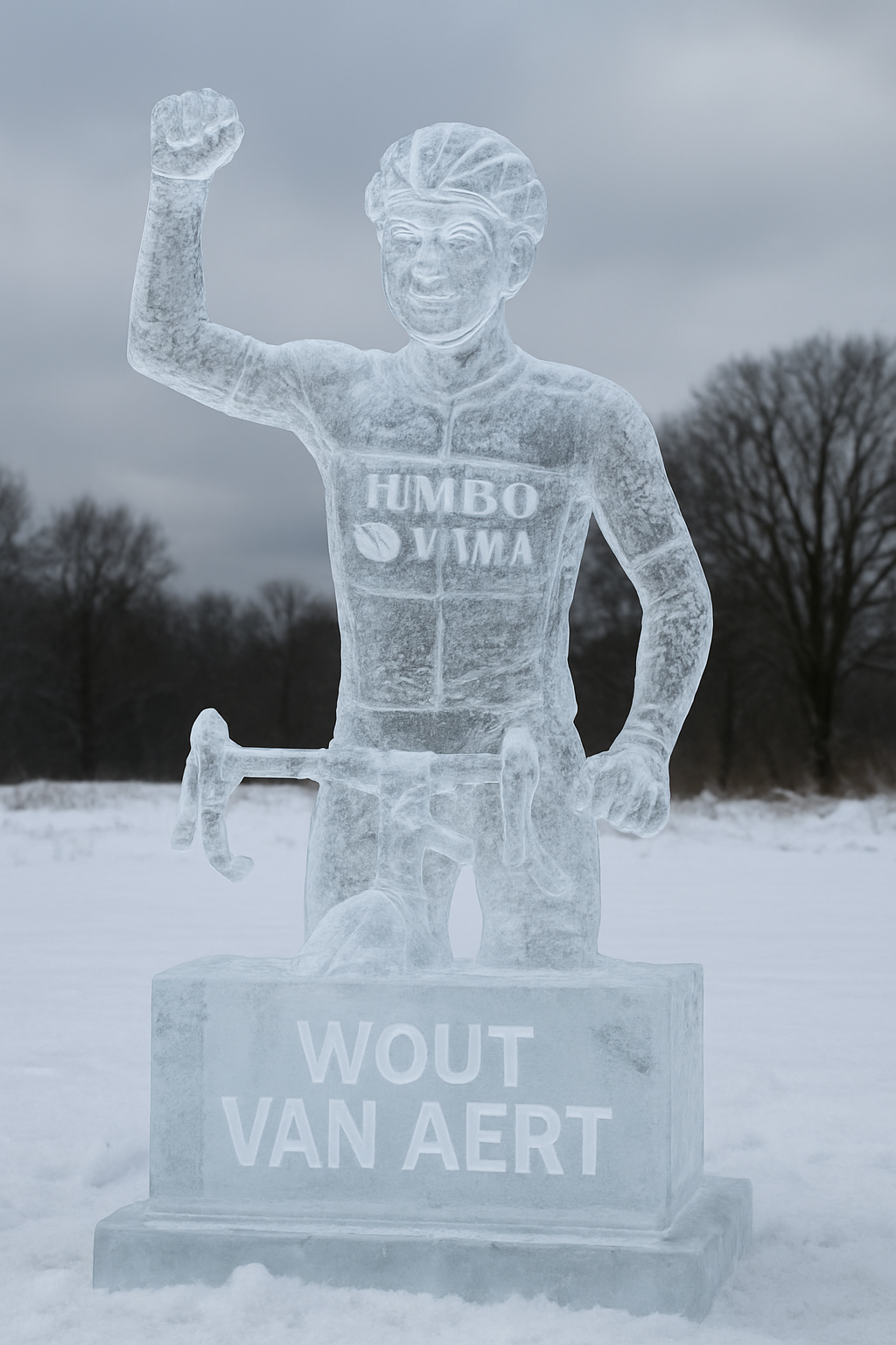 België bracht een passend eerbetoon aan een van haar grootste sporthelden met de onthulling van een adembenemend ijsbeeld van Wout van Aert in het wereldberoemde Brugse Sneeuw- en IJsbeeldenpark. Het bevroren monument, met minutieuze precisie gebeeldhouwd, legt de essentie van de Belgische superster in volle racehouding vast: vastberadenheid in zijn ogen, kracht in zijn houding en het onmiskenbare silhouet van een wielrenner die bijna elk denkbaar terrein heeft veroverd.
