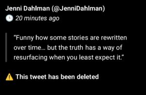 Sosiaalisen median aikakaudella poistaminen harvoin tuo päätöstä; sen sijaan se usein herättää syvempää epäilystä. Miksi viesti poistettiin niin nopeasti? Oliko se kirjoitettu tunteen vallassa ja katui sitä välittömästi? Oliko se harkittu viesti, joka oli tarkoitettu nähtäväksi lyhyesti ja sitten poistettavaksi, mikä mahdollisti uskottavan kiistämisen? Vai johtiko ulkopuolinen paine – oikeudellinen, henkilökohtainen tai ammatillinen – sen nopeaan poistamiseen? Ilman Dahlmanin selvennystä tyhjyys täyttyi nopeasti spekulaatioilla.