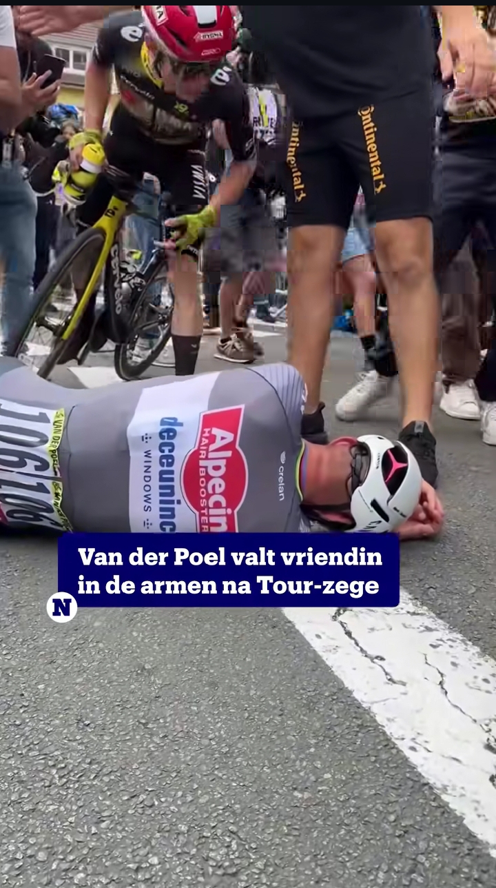 En toen kwam het meest emotionele moment van allemaal. Terwijl fans over de vangrails leunden en de camera’s inzoomden, snelde Van der Poels vriendin naar voren. Knielend naast hem wiegde ze hem in haar armen. Voor een man die bekendstaat om zijn felle competitiedrang en onwrikbare kalmte, was dit een zeldzame glimp van kwetsbaarheid. Zijn overwinning was compleet, maar zijn ineenstorting ook – fysiek, mentaal en emotioneel.