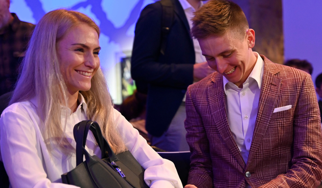 Med javnim nastopom je Pogačar postal vidno čustven, ko je omenil svojo ženo, tudi profesionalno kolesarko, **Ursko Zigart**.
